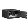 Coffre fort hôtel Hartmann Tresore HS 458 02. Volume : 36 litres. Poids : 14 kg. Coffre fort à code avec affichage digital + ouverture d'urgence par clé de secours. Clavier rétroéclairé par LED et éclairage intérieur.