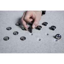Pour créer 1 mètre linéaire de Bande d'Eveil à la Vigilance (BEV) de 40 cm de large, vous aurez besoin de 149 clous podotactiles et pour une BEV de 60 cm de large d'environ 216 clous podotactiles.