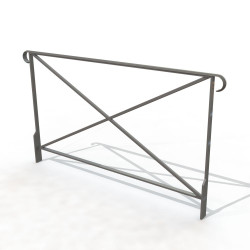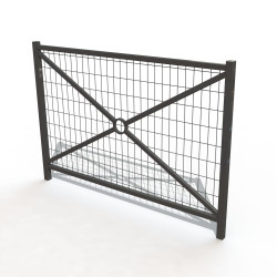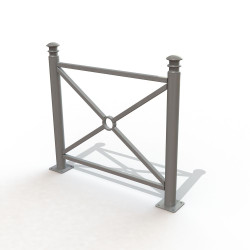 Barrière de ville croix de Saint André entièrement grillagée, modèle Mérignac. Fixation de ce mobilier urbain au choix par scellement dans des plots de béton ou platines avec chevillage sur sol béton. Finition par thermolaquage nuancier ral (standard), autre couleur ral (Futura AkzoNobel) nous consulter.