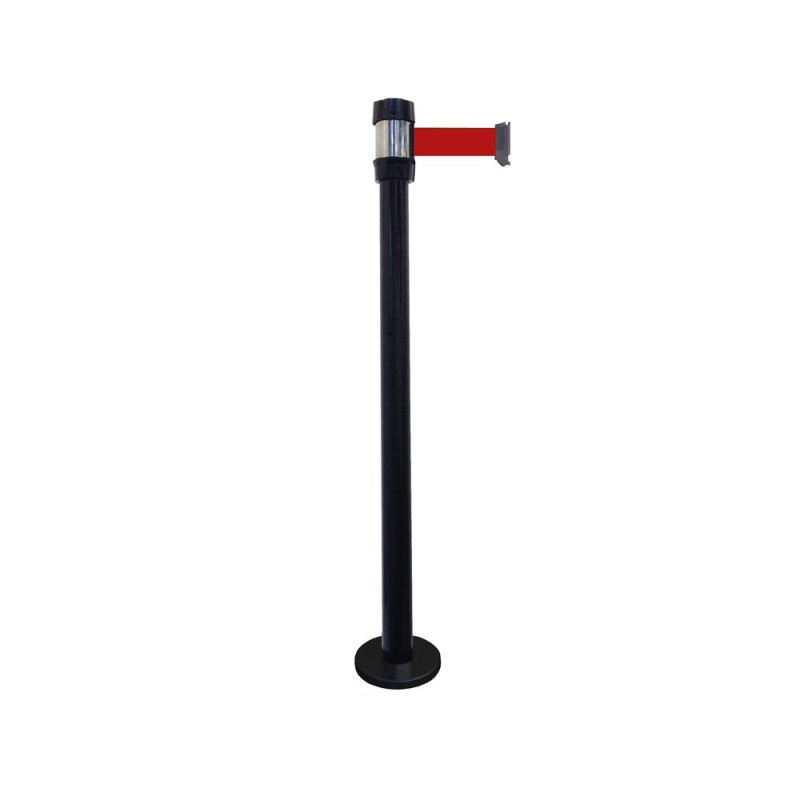 Poteau de guidage à sangle rétractable à fixer au sol grâce à une platine. Sangle d'une largeur de 5 cm, elle d'une longueur jusqu’à 210 cm.