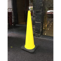 Cône de balisage au sol d'une hauteur de 90 cm, il est lesté au pied avec un socle en caoutchouc. Crochet, lampe flash et stickers en option.