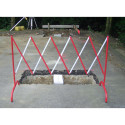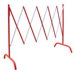 Barrière extensible de chantier en acier facile à mettre en place et peu encombrante une fois pliée. Elle est extensible jusqu'à 2,30m, stable et très visible grâce à son coloris rouge/blanc. Peinte avec une peinture époxy anti-UV. Support pour panneau sur le dessus (en accessoires).