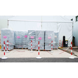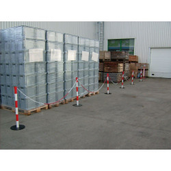 Poteau de balisage en acier avec crochets pour y fixer une chaine. Les modèles 2 couleurs sont équipés de larges bandes réfléchissantes de classe 1 pour une visibilité optimale de nuit. Socle lesté pour plus de stabilité. Dessus du poteau peut accueillir un panneau d'information en accessoire.