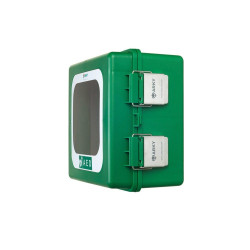 Cette armoire est disponible avec chauffage pour protéger le DAE contre le froid. L’élément de chauffage standard protège le DAE contre des températures allant jusqu’à -45 °C.