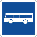 Panneau d'indication signalant une station arrêt d’autobus (C6). La signalisation d’un arrêt d’autobus ou d’autocars des services réguliers de transports en commun est facultative. Elle est assurée au moyen du panneau C6, lequel a seulement valeur indicative. Le panneau C6 est exclusivement implanté en signalisation de position, au début de l’emplacement d’arrêt, de manière à rester visible lorsque l’autobus est arrêté.