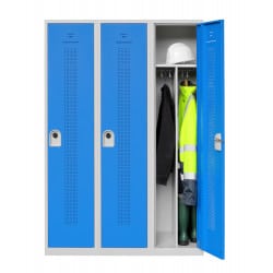 Armoire d'entretien permettant de répondre à tous les besoins de rangement des agents d’entretien, services techniques ou de maintenance. Convient pour tout type de rangement : produits ménagers, balais, archives, outils... L'armoire de rangement métallique à porte battante est pratique et polyvalente.