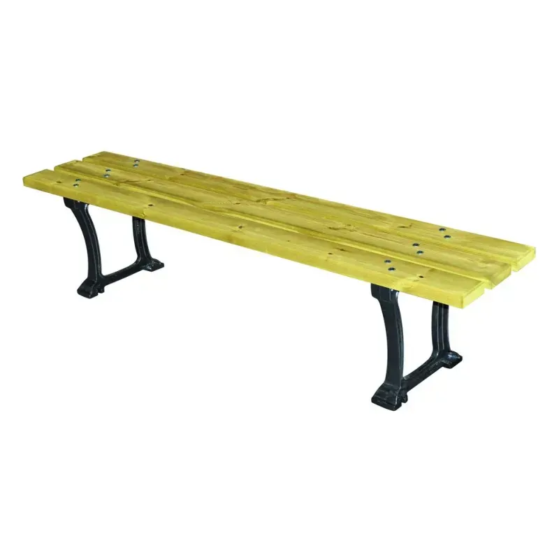 Banquette de jardin public identique au modèle Pampelune mais avec des lames en pin du Nord traité autoclave classe 4. Ce mobilier urbain est d'un excellent rapport qualité prix.