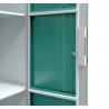 Casier visitable LUXE conçu pour une utilisation en milieu scolaire ou en entreprise. Un cadre mobile fermé par une serrure à clé permet l'accès simultané à toutes les cases. Disponible avec 3, 4 ou 5 casiers superposés par colonne, 16 couleurs au choix et 2 hauteurs pour s'adapter à la taille des élèves et des étudiants.