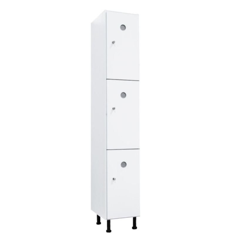 Idéal pour les environnements humides, le vestiaire PVC est hygiénique, inodore et anti-bactérien. Il pourra s'adapter à votre espace en juxtaposant les blocs allant de 1 à 4 colonnes de trois cases.