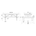 Table de pique nique PMR (Personnes à Mobilité Réduite) en bois de pin du nord autoclave classe 4, épaisseur du bois 45mm. Modèle avec plateau rallongé aux 2 extrémités permettant l'accès à 2 fauteuils roulant. Table pique nique idéale pour l'aménagement d'une aire de repos, une aire d'autoroute par exemple ou bien pour un parc ou un jardin public. La version à sceller est conçu pour résister au vandalisme grâce à un renfort métallique à l'intérieur des pieds rendant le sciage impossible.