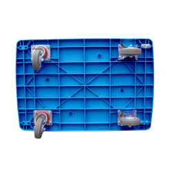 - Roues en caoutchouc, 2 fixes et 2 pivotantes.