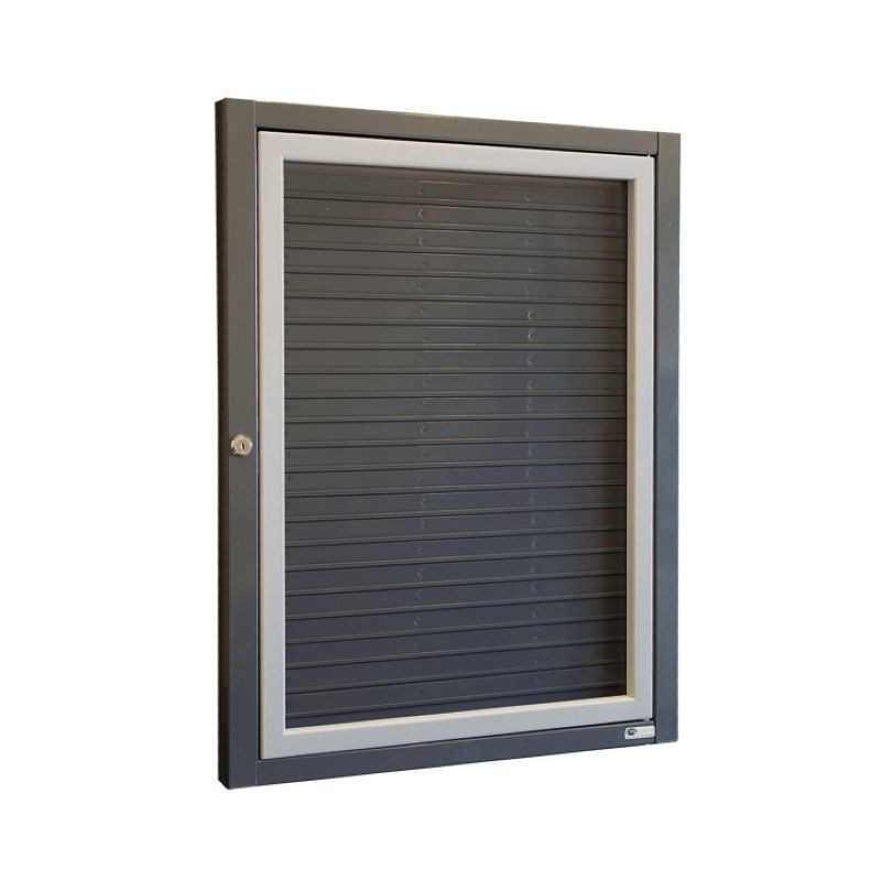 Tableau d'affichage nominatif avec porte pour boîtes aux lettres.