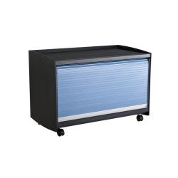 - Fermeture : rideau polypropylène, lamelles 1.5 cm, s'escamotant totalement dans les parois pour un accès et une visibilité totale du contenu de l'armoire. Poignées encastrées avec cache escamotable. Serrure à double sortie, livrée avec un jeu de 2 clés numérotées.