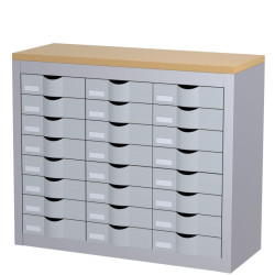 - Volume de classement par tablette : 80 dossiers suspendus, ou 11 classeurs dos 7.5 cm, ou 10 boîtes archives dos 8 cm.