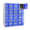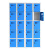 Vestiaire multicase avec portes transparentes ECO, 2 casiers en plexiglass transparent superposés par colonne. Disponible avec colonne de 30 cm ou 40 cm de large. 1 couleur de corps et de portes : corps gris ral 7035 et portes bleu ral 5012.