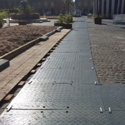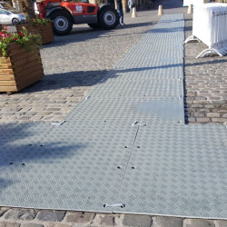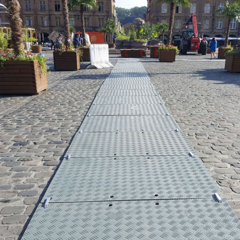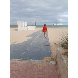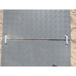 Plaque de roulage rigide permettant de créer des accès modulables sur des surfaces instables, modèle Economique réversible avec un côté piéton / Personnes à Mobilité Réduite et un côté pour le passage de véhicules légers et lourds jusqu'à 10 tonnes. Vendu à l'unité.