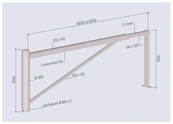 - Largeur modulable de 300 à 475 cm, blocage par boulon traversant