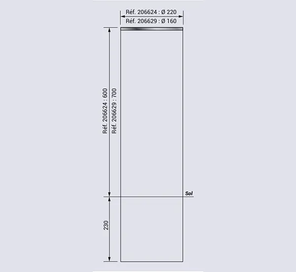- Hauteur hors sol : 70 cm (D.16 cm) et 60 cm (D. 22 cm).