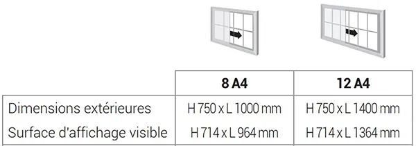 Tableau d'affichage 8 à 12 A4 vitrine à portes coulissantes