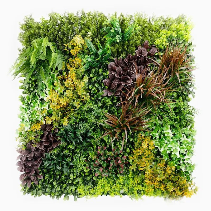 Mur végétal artificiel "feuillage Réaliste". Disponible à l'unité, par lot de 5 plaques soit 5 m² ou par lot de 50 plaques soit 50 m².