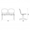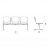 Siège poutre de 2 à 5 chaises ISO, assise tissu M1 et dossier résille noire, structure acier noir.