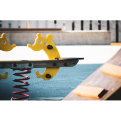 Jeu sur ressort pour enfants Benito Gus, amusant et favorisant l'apprentissage. Fabriqué avec des matériaux résistants et certifiés conformément à la réglementation EN1176. Zone d'impact : aire de sécurité et revêtement du sol conformes à la réglementation EN1176-1:2017.