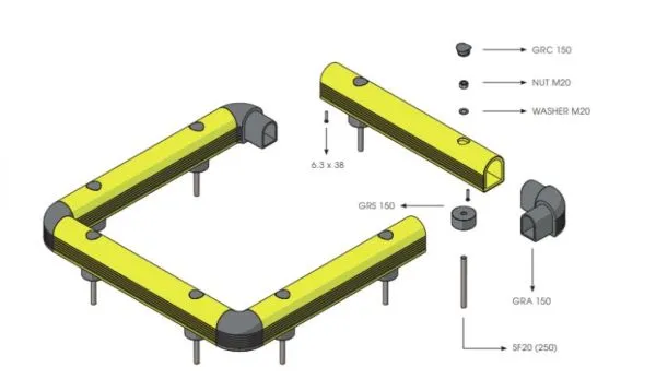 - Base faite avec des rails de protection GR150, robuste et compact dotée d'une grande base d'impact plane et fermée pour le blocage des charges en mouvement