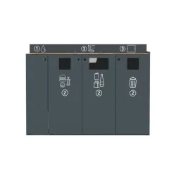 | RESTOTRI | Acier traité anticorrosion et poudré anti-UV | Dos, côté, portes en acier traité anti-corrosion et poudré anti-UV | Compact HPL chêne clair | 1595 x 1170 x 1250 | 147 | 2 x 20L + 2 x 85L |
