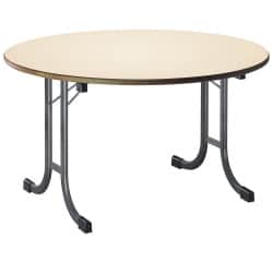 Table ronde pliante et empilable. Faible encombrement une fois pliée. Plusieurs dimensions au choix. Couleur du plateau et des piètements au choix. Chants en pvc antichoc.
