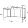- Toit : couverture arrondie 2 faces en polycarbonate alvéolaire traité anti-UV, pincées entre les arceaux