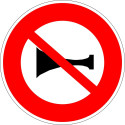 Panneau interdiction signalant l’interdiction de dépasser klaxonner (B16).