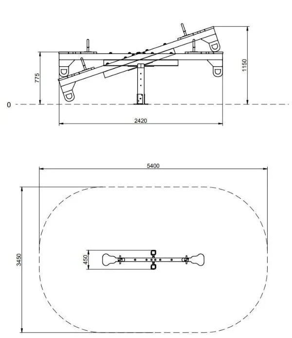 Jeu composé d'un ressort collectif de deux places composée de ferrure en acier inoxydable, de poignées et d'une système de rotation.