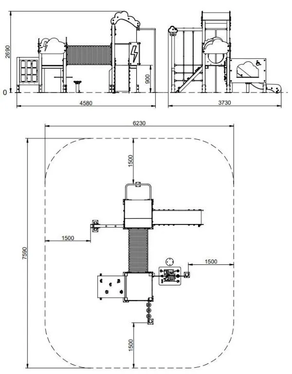 Structure de jeux pour parc d'enfants Benito Rayo, ce modèle permet de se familiariser avec la météo : la pluie, le soleil, les nuages... Des conceps très clairs pour un adulte maisqui réprésentent une découverte pour les plus petits.