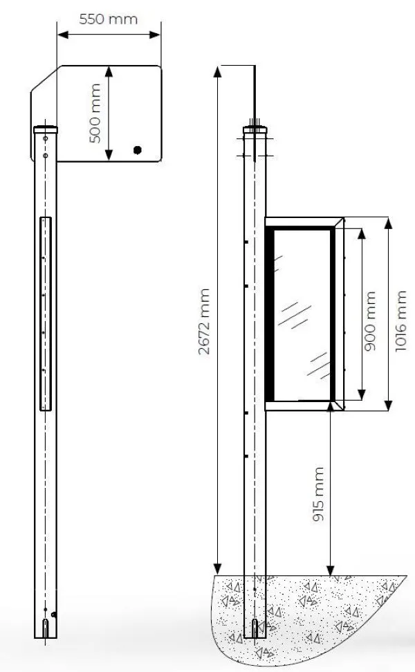 Dimensions du poteau arrêt de bus avec anneau lumineux