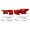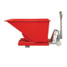 Benne autobasculante Stockman SBA, contenance de 1500 à 2000 kg, adaptable sur chariot élévateur. Le basculement automatique se fait par une plaque de pression sur le devant des passages de fourches. Il peut aussi se faire par une opération manuelle de déverrouillage par câble qui peut être réalisée directement du chariot élévateur.