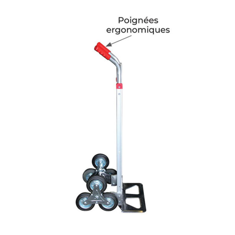 - 3 roues caoutchouc sur jantes acier, résistant aux chocs répétés des manipulations dans les escaliers
