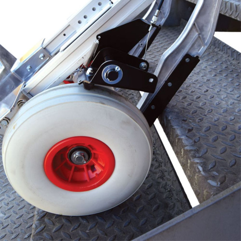 - Roues gonflables sur jante plastique haute densité, montées sur roulements à billes double étanchéité