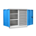 L'armoire d'atelier dispose d'une séparation médiane et de multiple tiroir pour une meilleure organisation de rangement de vos outils. Sa conception en monobloc soudée, lui confère une grande robustesse. Elle est disponible avec plusieurs options et pourra s'adapter à votre activité.
