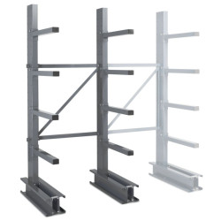Rayonnage lourd pour charges longues Cantilever simple face. Idéal pour le stockage de charges longues (tubes, profilés, planches…). Montage facile par boulonnement des bras sur les colonnes.