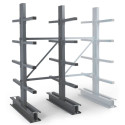 Rayonnage lourd pour charges longues Cantilever double face. Idéal pour le stockage de charges longues (tubes, profilés, planches…). Montage facile par boulonnement des bras sur les colonnes.