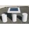 Table jeux de société pour l'extérieur. Enjambement libre, antivandalisme. A sceller. 2 tabourets inclus.