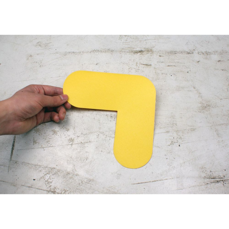 Adhésif antidérapant avec angle en "L" adapté au marquage au sol en entrepôt ou usine. Très robuste, épaisseur de 700 microns.