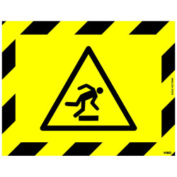 Adhésif de marquage au sol extérieur avec pictogramme "Risque de trébucher". Conforme StreetApp IP 2555. Traité anti UV. Un nettoyage en profondeur est impératif avant la pose.