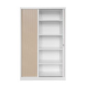 L'armoire comprend 2 tablettes réglables, 3 niveaux de classement, 2 niveaux de dossiers suspendus.
