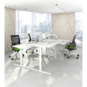 Le plateau (d’épaisseur 2.5 cm) en mélamine blanc et le piétement métallique blanc permettent à ce bureau de se fondre dans n’importe quel espace de travail.