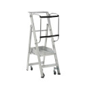 Marchepied pour mise en rayon avec mains courantes repliables 2 marches (plate-forme incluse), conception selon la norme AFNOR FD E85-301.