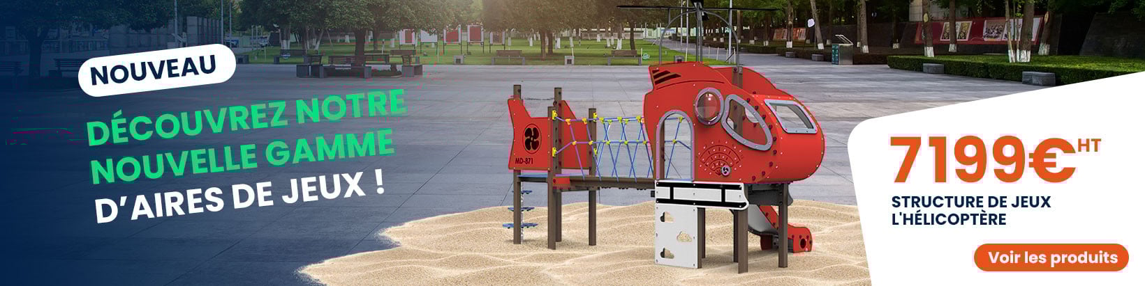 L’équipement des aires de jeux : sols amortissants pour aires de jeux, sols pour salles de sport, aires de jeux pour enfants, terrains multisport, street workout et fitness, baby-foot, tables de ping-pong, casiers et vestiaires, etc.